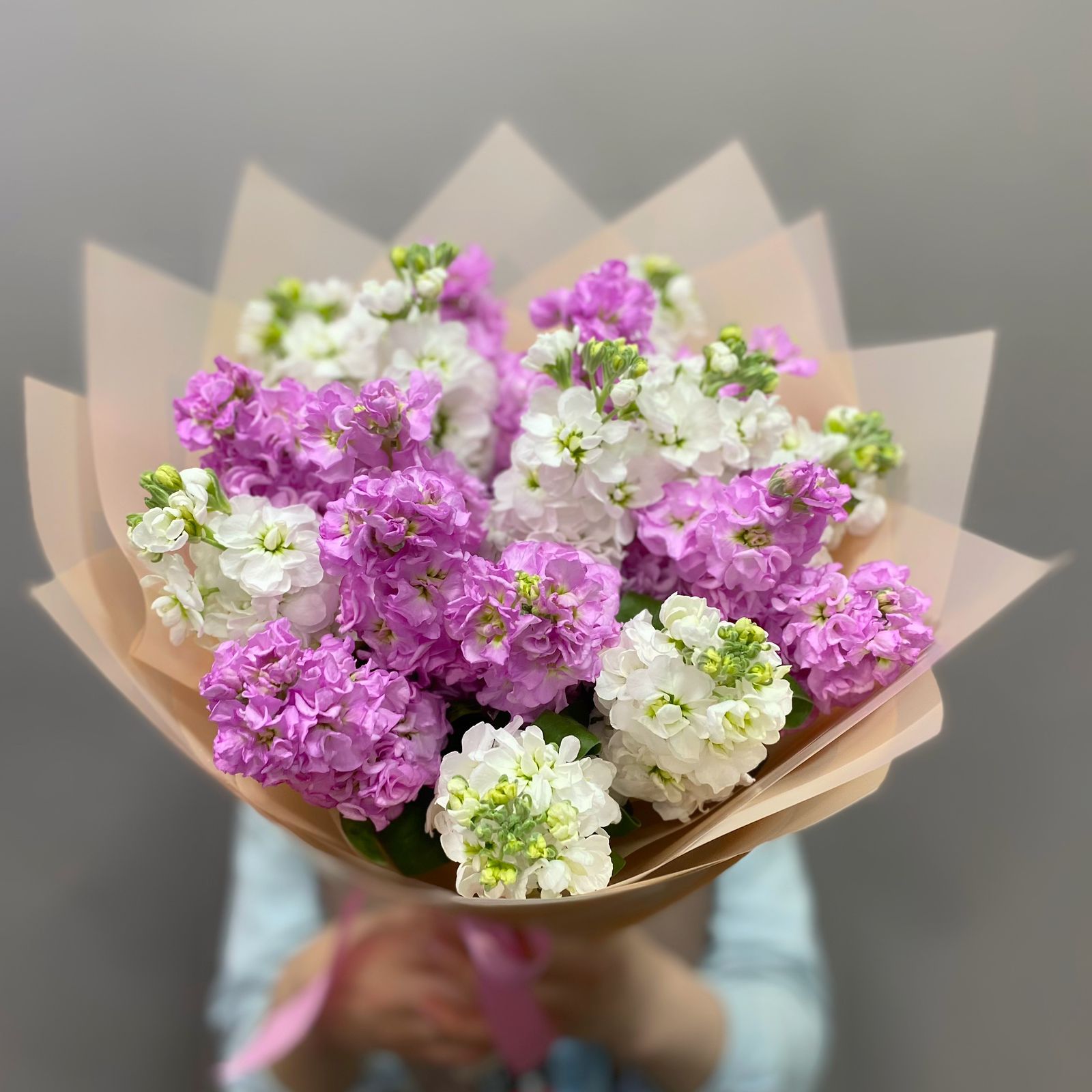 Букет из 19 белых маттиол — воплощение нежности и утончённого аромата. Изящные цветы с воздушными лепестками создают легкость и изысканность, наполняя пространство свежестью и романтикой. Очаровательная композиция станет прекрасным выбором для особенного момента, даря тепло и искренние эмоции.